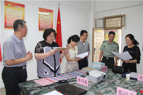 【宁夏大学新闻中心讯 国防生记者站 李苗/文 龚旭峰 冯安/图】6月24日上午,全区教育系统基层党建示范点评估小组,在C区14号楼对我校第二批学生公寓党建示范点国防生“迷彩青春党支部”进行了检查验收。