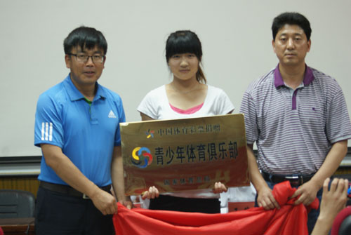 在揭牌仪式上,蔡晓强宣读了俱乐部授予文件,体育俱乐部法人代表谢琴对俱乐部性质、机构组成及服务宗旨和范围作了简单的介绍,随后,体育学院院长刘旭东与体育局蔡晓强同志为“宁夏大学体育学院青少年体育俱乐部揭牌”揭牌。