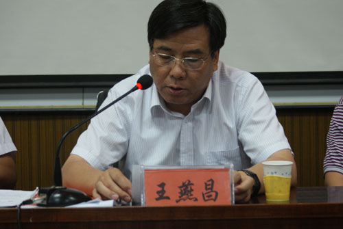 王燕昌做总结发言,他对国家体育局同意创建宁夏大学 “青少年体育俱乐部”表示热烈的祝贺;对备战全运会的教练员、运动员的决心给予了肯定,同时,他也希望全体运动员、教练员和工作人员在未来两个月的集训期和参赛期要继续发扬团结奋斗、顽强拼搏的精神,努力完成好各项备战参赛任务;要加强学习与交流,多和周边省区的代表队进行实战演练,学习他们的成功做法,丰富实战经验,不断获得新启示;要展示风采,赛出水平,不怕困难,顽强拼搏,以饱满的热情、最佳的竞技状态投入比赛,努力发挥比平时高的训练水平,取得优异的成绩;四要协调配合,形成一个团结、有战斗力的集体,学院各部门要全力支持和配合各代表队的工作,共同打好全运会这场硬仗。