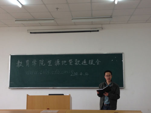 2014届毕业生中获得生源地信用助学贷款的学生总数为1464人,合计贷款金额1756.55万元,为了做好获贷学生的诚信教育和按期还款,4月初学生资助管理中心对各学院负责毕业生工作的老师开展了生源地信用助学贷款毕业确认通报会的培训,现场解答了老师及毕业生对于生源地信用助学贷款毕业确认工作中的问题及意见。