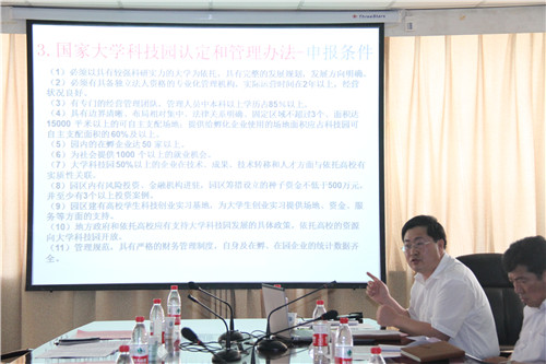 与会专家听取了我校大学科技园办公室负责人程胜利所作的申报宁夏大学国家级科技园的汇报。