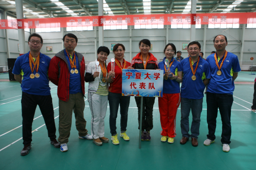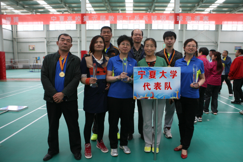 【宁夏大学新闻中心讯 工会】由自治区教科文卫体工会主办、宁夏师范学院承办的宁夏高校第六届教职工乒乓球、羽毛球比赛于5月24、25日在宁夏师范学院体育馆落下帷幕。在两天的比赛中,我校教职工代表队发扬了连续作战、顽强拼搏的精神风貌,取得了可喜的成绩:在团体项目比赛中,羽毛球混合团体获得冠军,乒乓球男子团体获得冠军;单项比赛项目中,羽毛球混合双打获得冠军,男子双打获得亚军,女子双打获得亚军,男子单打获得季军,乒乓球男子单打获得亚军。