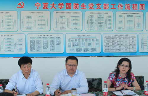 王宏伟强调,国防生在校期间的根本任务是学习,部队需要的是高素质新型军事人才,在今后的工作过程中要将国防生公寓党建活动与国防生军政训练活动相结合;将国防生公寓党建活动与国防生军事文化活动相结合;将国防生公寓党建活动与国防生学习成才活动相结合;将国防生公寓党建活动与国防生日常教育管理相结合;将国防生公寓党建活动与国防生模拟营建设相结合。着力打造“政治可靠、素质全面、特点突出”的在全校乃至全区的各大高校具有影响力的品牌公寓党支部。
