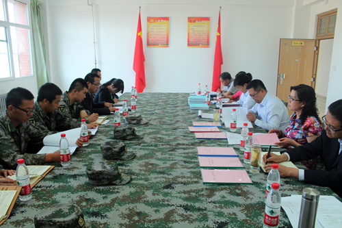 检查验收采取听取汇报、实地查看、检查支撑材料等形式进行,检查验收期间,学生处副处长、迷彩青春党支部书记刘伯川向检查验收评选小组对迷彩青春党支部的示范点建设概括、评为校级党建示范点后做的重点工作、今后工作打算和建设经费的使用情况四个方面作了汇报。他讲到,迷彩青春党支部的主要功能定位为建强堡垒、勇当先锋、弘扬先进、服务公益,下设学习互助、训练互帮、文化宣传、公益服务4个功能小组。建成后各功能小组先后组织开展了 “一帮一、一对红”等学习互助活动,“军政文”大比武等训练互帮活动,成立国防生记者站等文化宣传活动,残疾人托养中心挂牌签约常态化服务等公益服务活动。今后,还会加大资金投入,完善硬件设施、创新活动内容、扩大宣传力度。