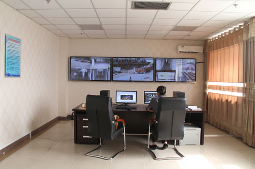 在A区主楼十六楼监控指挥中心值班室,保卫处负责人从监控点位分布、数据传送、信息存储、视频信息采集、操作人员使用维护能力和系统作用发挥情况等方面进行了汇报。