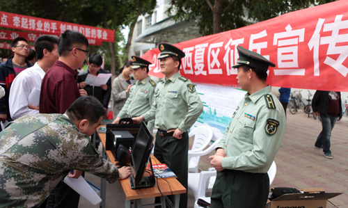 洽谈会上,自治区人力资源开发服务局、银川市劳动就业服务局、西夏区武装部就高校毕业生就业创业政策、普通高等学校毕业生直招士官等进行了现场咨询和宣传。