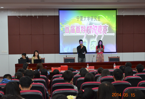【宁夏大学新闻中心讯 农学院研究生会 吴利晓 文/图】 5月15日晚,由宁夏大学研究生院、宁夏大学研究生会主办,宁夏大学农学院、农学院研究生会承办的宁夏大学第三届“塞上研华”研究生学术文化艺术节系列活动之“挑战最强大脑,征战知识巅峰”首届百科知识竞赛决赛在B区研究生楼二楼报告厅举办。