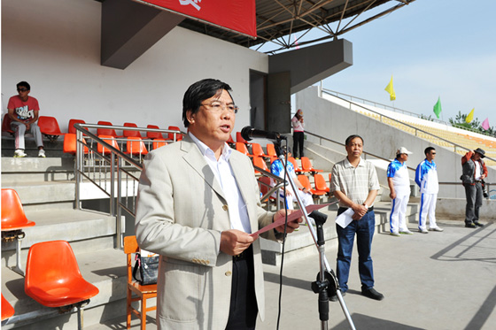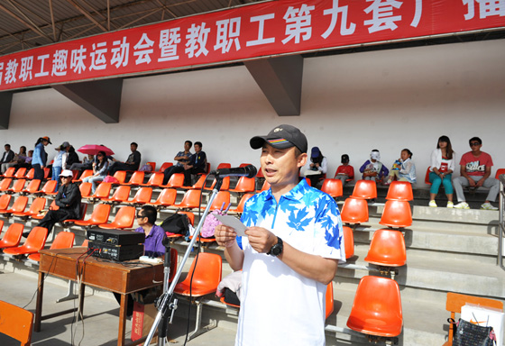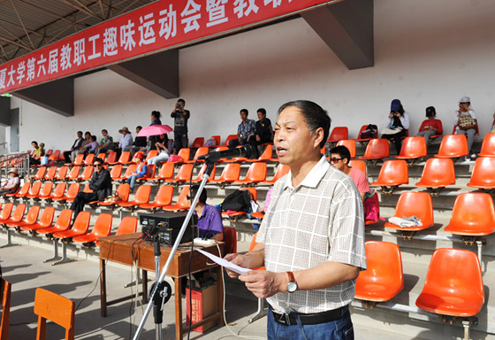 齐岳宣布宁夏大学第六届教职工趣味运动会暨教职工第九套广播操比赛开幕。