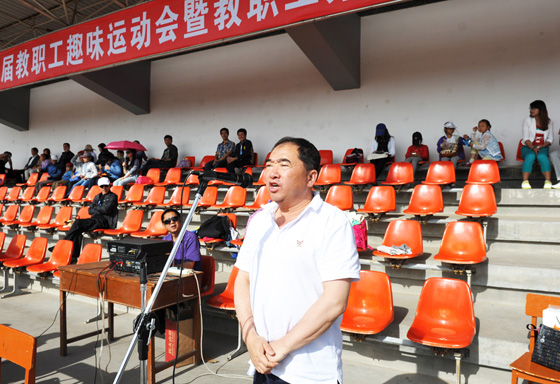 王燕昌致辞,他代表学校对本次运动会的召开表示热烈祝贺,对精心筹备本次运动会的各位老师表示诚挚的谢意,对担任广播操比赛的评委,对趣味运动会裁判员、运动员表示崇高的敬意。他说,近年来,为了丰富教职工的校园文化生活,增强教职工体质,促进和谐校园建设,增进友谊和团结,校工会积极落实校体育工作精神,在体育学院等单位配合支持下,举办了丰富多彩、喜闻乐见的文化体育健身活动。冬季教职工长跑(走)活动有1300余人参加,教职工瑜伽、有氧健美操、太极拳培训班参加的教职工已达到600多人次,趣味运动会自2009年开始已连续举办了六届,参加趣味运动会的教职工人数由最初的300人次上升到1800人次,这些活动深受广大教职工喜爱,为我校教职工搭建了锻炼运动的良好平台,教职工的体育锻炼意识大大增强。