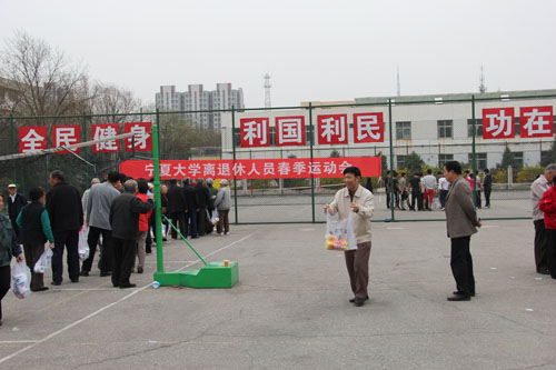 【宁夏大学新闻中心讯 张新民 苏丽华 /文 雍莉 图】塞外初夏,宁大校园姹紫嫣红,柳絮飞飘。4月17日至18日,我校离退休人员服务处分别在南校区和校本部B区举办了宁夏大学离退休人员春季运动会。数百名离退休老同志积极踊跃地参加了本次运动会。