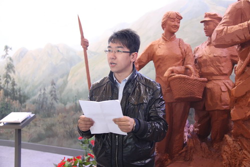 在六盘山革命圣地,师生们向革命先辈敬献花篮并鞠躬;学生会主席夏金柱代表师生献词,表达了对革命先辈的哀思,对今天幸福生活的珍惜,号召全体同学铭记先烈们的英雄事迹,继承光荣传统,坚定共产主义信念,奋发有为、锐意进取,为实现伟大的中国梦贡献青春力量。随后,同学们参观了六盘山红军长征纪念馆、纪念碑、纪念亭。在参观过程中,大家吟诵毛主席诗词、吟唱革命红歌,深切感悟到“不到长城非好汉”的长征精神与革命先烈的大无畏气概。
