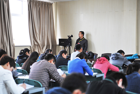 在A区文科楼经济管理学院笔试考试现场,何建国视察了经济学专业的笔试考场。他在考场外详细了解了学院的报考情况,复试比例以及复试工作的具体安排。