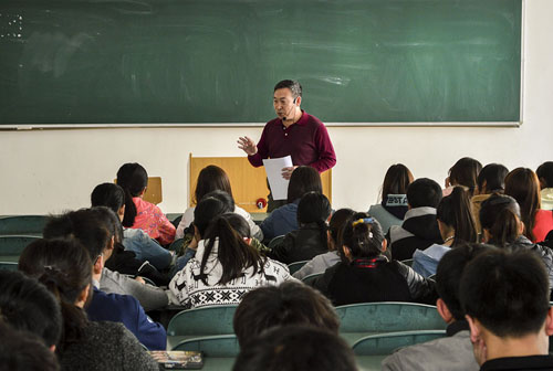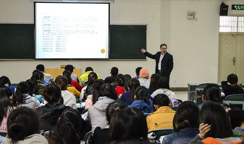 【宁夏大学新闻中心讯 胡玥/文 冯开华/图】“新时期我国的民族宗教问题是什么?如何处理好社会主义和谐的民族关系?”3月17日,我校教授、博士生导师孙振玉、李德宽为2013级美术学院和教育学院本科生开设的《民族宗教理论与政策》课在文科楼130和132教室开讲。校党委副书记赵利宁、副校长李伟和近300位同学共同聆听了两位博导带来的精彩课程。