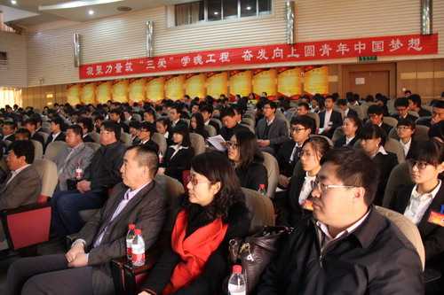 校学生会主席王曼代表第二十届学生委员会做了题为《凝聚力量筑“三爱”学魂工程 奋发向上圆青年中国梦想》的工作报告。