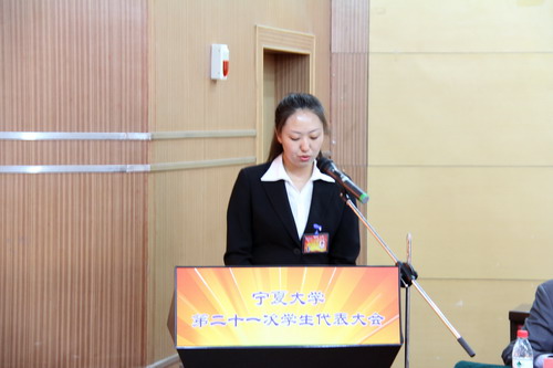 新一届学生委员会主席夏金柱宣读2014年宁夏大学学生会工作要点