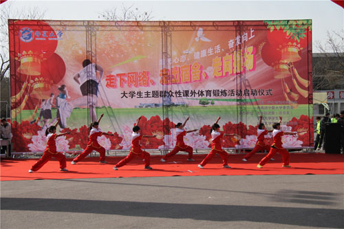 据了解,“走下网络、走出宿舍、走向操场”活动是由共青团中央、教育部、国家体育总局、全国学联联合决定从2014年开始,在全国高校范围内全面启动和广泛开展大学生主题群众性课外体育锻炼活动,旨在更好地贯彻落实党的十八届三中全会关于“强化体育课和课外锻炼,促进青少年身心健康、体魄强健”的精神,引导和帮助大学生提高参加体育锻炼的主观能动性、形成良好的体育锻炼习惯、提升身体素质,并从中磨练坚强意志、培养良好品德和拼搏精神。