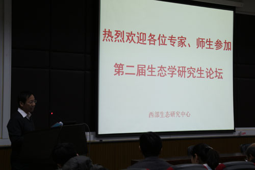 【宁夏大学新闻中心讯 西部生态研究中心】1月3日下午,西部生态研究中心举办了以“干旱区生态学的新案例” 为主题的第二届生态学研究生学术论坛。副校长谢应忠、研究生院常务副院长冯秀芳、发展规划与学科建设处处长王正英、宁夏科技厅、宁夏科学技术发展战略与信息研究所等部门的领导和专家以及本学位点的师生参加了论坛。宋乃平主任主持会议。