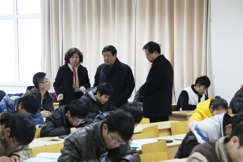 【宁夏大学新闻中心讯 胡玥/文 曾华/图】1月13日上午,校长何建国、校党委副书记赵利宁、副校长王春秀到校本部C区L楼考场检查巡视2013—2014学年第一学期本科生期末考试情况。