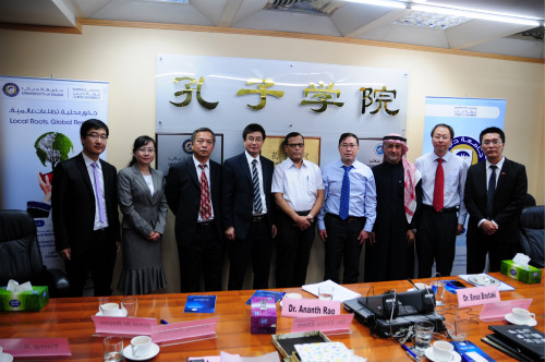 【宁夏大学新闻中心讯 孔子学院马军 张继超 杨晓丽报道】当地时间2014年1月27日上午11:30,迪拜大学孔子学院第四次年度理事会议在迪拜大学举行,我校谢应忠副校长出席会议。会议由迪拜大学校长巴斯塔克博士、教授主持。