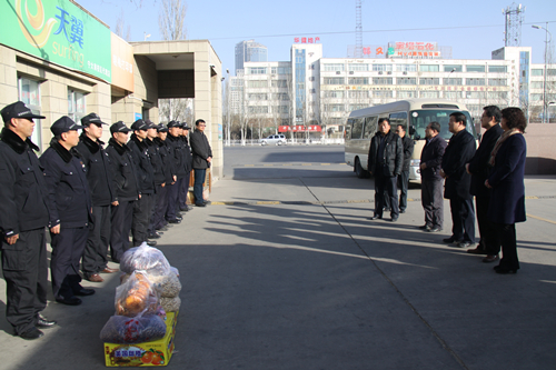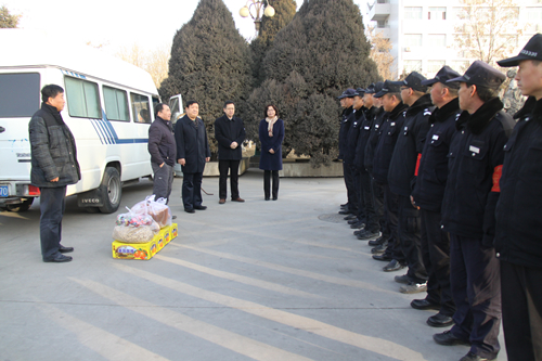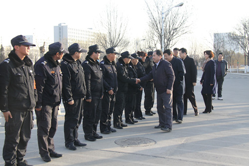 慰问中,校领导表示,春节是千家万户团圆的时刻,但保卫、后勤部门为了保证春节期间教职工的正常生活,仍有部分干部职工放弃了和亲人团聚的机会,坚守在一线工作岗位,体现了“舍小家顾大家”的无私奉献精神。齐岳书记、何建国校长代表全校师生员工向春节和寒假期间坚守岗位的保安和后勤干部职工表示衷心地感谢,并勉励他们再接再厉,确保广大教职工度过一个欢乐、祥和、安全的春节和假期。职工们感谢学校领导的关心,表示将牢记岗位职责、为春节期间的校园安全与保障做出自己的贡献。