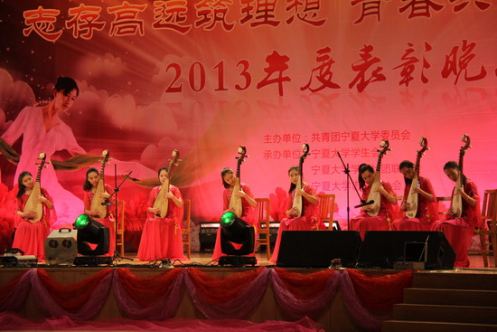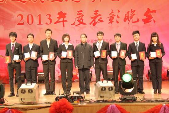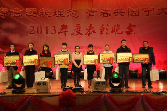 【宁夏大学新闻中心讯 团委】12月19日晚,由校团委主办,校学生会、学生社团联合会、志愿者协会承办的“志存高远筑理想青春共圆宁大梦”宁夏大学2013年团学工作表彰晚会在大学生活动中心举行。校党委副书记赵利宁,自治区团委学校部部长李彦炜,银川团市委副书记张涛及我校党委宣传部、统战部,校长办公室,学生处、团委等相关部门负责人,各学院团委书记及我校4000余名大学生一同观看了本次晚会。