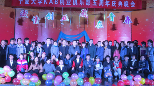 宁夏大学KAB创业俱乐部创建于2008年12月,自成立以来,俱乐部先后两次获得全国创业大赛一等奖,获得全国十佳公益创意创业大奖,获得联想创业大赛西北赛区二等奖,多次选送优秀干部赴北京、香港、上海、天津等地参观学习。近年来,在宁夏大学团委、宁夏大学学生处、宁夏大学大学生就业创业指导服务中心的指导下,宁夏大学KAB创业俱乐部先后举办了创业大讲堂、城区生存挑战赛、创业风云争霸赛、创业微课堂、创业沙龙、创业工作坊、创业计划大赛、创业实战营销大赛、企业直通车、素质拓展训练等20余项活动,受到了同学们的欢迎和喜爱。2013年8月,喜讯传来,宁夏大学KAB创业俱乐部在全国214所高校俱乐部中荣获2012年“全国十佳创业俱乐部”。