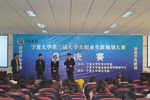 【宁夏大学新闻中心讯 大学生就业创业指导服务中心】为帮助我校大学生更好地发现自我、挖掘潜能、开发自我,引导学生理性规划大学及职业生涯,使大学和职业有目标、有方向、充满意义。12月11日下午,我校第三届大学生职业生涯规划大赛总决赛在A区文科楼模拟法庭成功举行。