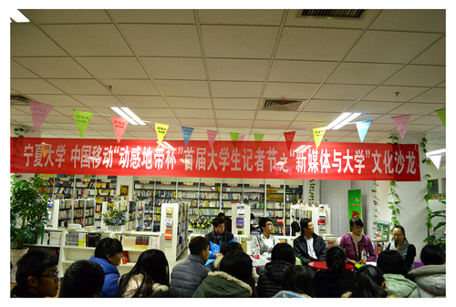 【宁夏大学新闻中心讯 学生记者 智菊霞 曹鹏/文 冯开华/图】这是一个变化的时代。面对未来,你准备好了么?11月20日晚,宁夏大学 中国移动“动感地带杯”宁夏大学首届记者节系列活动之“新媒体与大学”文化沙龙在宁夏大学博亚书店成功举办。