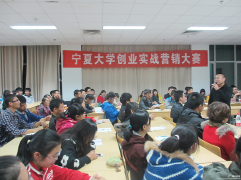 【宁夏大学新闻中心讯 大学生就业创业指导服务中心报道】 11月8日晚,我校24小时创业实战营销大赛暨首届创业微课堂专题培训会在C区L楼308教室举行。宁夏山丹丹杂粮食品有限公司董事长刘波、总经理张自斌,玖零互生银川分公司总经理杨建军、副总经理陆进,国际阳光企业家协会秘书长冯建华、副秘书长徐军、王伟、总经理吴颜锋,学校大学生就业创业指导服务中心副主任郑毅敏以及我校已参加创业培训的学生及KAB俱乐部会员200余人参加了活动。