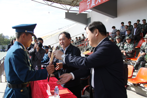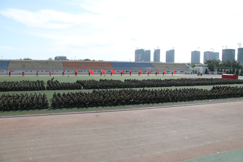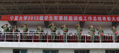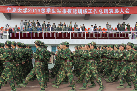 【宁夏大学新闻中心讯 张新民 吴猛 宋天祥/文 曾华/图】9月25日上午,我校2013级学生军事技能训练工作总结表彰大会在B区田径场召开。校领导齐岳、何建国、赵利宁、王燕昌、马应虎、孔斌,中国人民解放军94020部队马维芳团长、伊波副参谋长,宁夏军区学生军训工作办公室主任刘彦强,宁夏教育厅体卫艺处处长石丽文等出席了表彰会。宁夏大学军训团政委王宏伟主持表彰会。