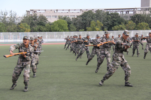 阅兵总指挥军训团团长魏国孝宣布阅兵式开始,各营连方队迈着整齐的步伐,喊着响亮的口号,精神抖擞地走过了检阅台。阅兵式结束,2013级全体国防生表演了精彩的刺杀操,经管学院百名女生表演了女子防身操,音乐学院合唱队在俞彬老师指挥下表演了军歌大合唱。