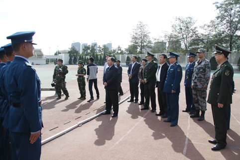 表彰会结束后,与会校领导慰问了承训部队教官并与他们话别。