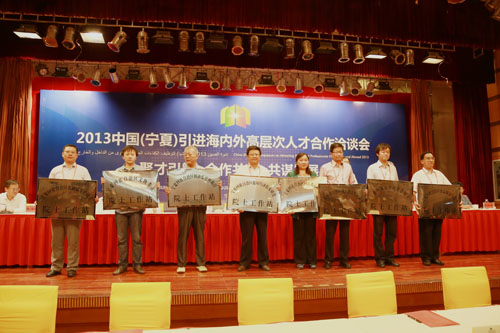 2013年,我校柔性引进的王超、孙大文、周福霖、傅伯杰、刘昌明五名院士和王金淑、陈昌和、李彦、刘国华、李保国、苏宁虎六名专家分别接受了“自治区特聘专家”聘书, “宁夏循环经济技术研究院士工作站”和“宁夏食品质量与安全院士工作站”被授牌为新建院士工作站承载单位。