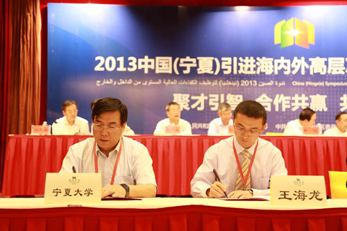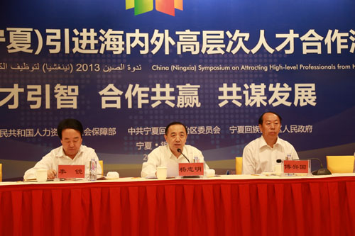 【宁夏大学新闻中心讯 雷慧/图 胡玥/文】9月13日,根据2013中国·阿拉伯国家博览会总体安排,由人力资源社会保障部支持,自治区党委、政府主办的2013中国(宁夏)引进海内外高层次人才合作洽谈会在银川举行。人力资源和社会保障部副部长杨志明、自治区领导傅兴国、李锐、何学清、张学武出席会议。14名中国科学院、中国工程院及国外院士与区内有关企事业单位、引进项目单位与合作单位的代表近300多人参加了会议。我校党委副书记王燕昌作为高层次人才引进单位代表参加了会议。