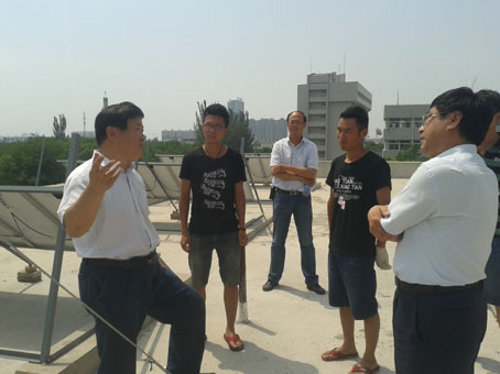 6月13日,何建国校长专程来到现场,饶有兴趣地仔细查看各个设备,与在场师生交谈并提出下一步工作的建议。他对新能源研究中心勇于克服困难,积极主动创造条件开展工作,使所购置的90%以上的设备得以利用给予表扬。6月14日,银川瑞明太阳能有限公司张总经理亲自送来产品进行了检测。