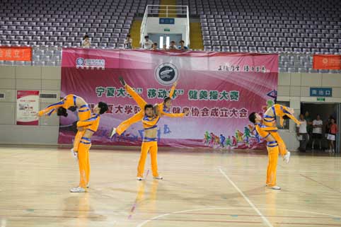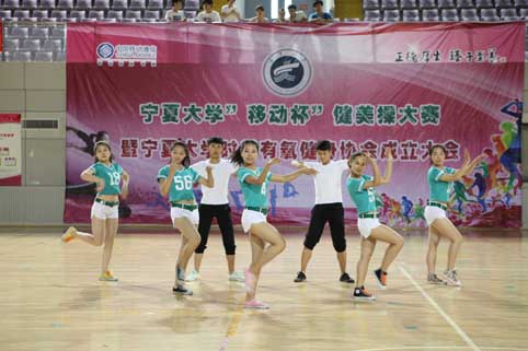 【宁夏大学新闻中心讯 苏小栓 张 鹏报道】6月7日,宁夏大学时尚有氧健身协会成立暨第八届全民健身体育文化节“移动杯”健美操比赛在大学生活动中心举行。校领导何建国、赵利宁、王燕昌、王春秀,自治区体育局竞体处处长、自治区健美操协会会长张梅等出席开幕式。本次比赛由体育学院承办,我校100多名学生参加了比赛。体育学院体操专业老师、国家一级体操裁判员冯慧玲、李晓玲、赵俊玲、吕红方、刘军、王雅丽、司淑梅分别担任仲裁委员会、裁判长、副裁判长、裁判员。体育学院院长刘旭东主持开幕式。
