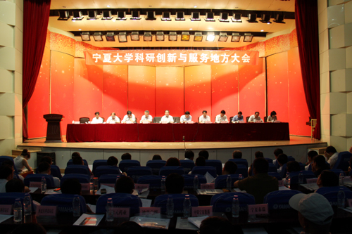【宁夏大学新闻中心讯 曾华 徐 静报道】5月27日上午,宁夏大学科研创新与服务地方大会在校本部A区音乐厅举行。自治区教育厅副厅长冀永强、自治区科技厅副厅长郭建川,我校领导齐岳、何建国、王燕昌、许兴、李伟、李星、谢应忠、张成、王春秀,自治区发改委、财政厅、经信委、农牧厅、林业局、农垦局等厅局科技部门领导,银川市、石嘴山市、吴忠市、固原市、中卫市、贺兰县、灵武市、西夏区、原州区等市县科技局局长,神华宁夏煤业集团有限责任公司、宝丰能源集团有限公司、中铝宁夏能源集团有限公司、宁夏泰瑞制药股份有限公司、宁夏百瑞源枸杞产业发展有限公司、银川隆基硅材料有限公司、银川天佳仪器仪表有限公司、灵武市果业开发有限责任公司、贺兰新明水产养殖有限公司等企业代表,学校各职能处室、学院及科研平台负责人、科研人员代表等300余人参加了大会。会议由副校长许兴主持。