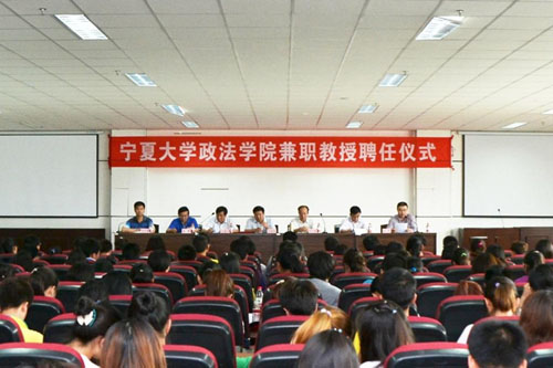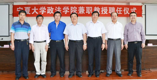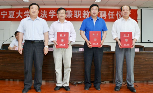 政法学院聘请中卫市中级人民法院院长乔生彪、自治区党校副校长张廉、宁夏社会福利院院长杜勇为学院兼职教授。任军介绍了政法学院兼职教授的个人简历和学术概况。受聘教授分别致辞表示作为“宁大人”今后要和广大师生一起共铸宁大梦。