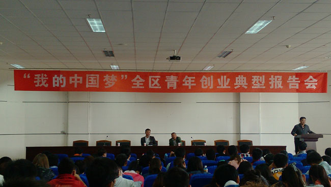 【宁夏大学新闻中心讯 团委报道】4月24日下午,“我的中国梦”全区青年创业典型报告会在我校举行。报告会特邀 “三木门业”何翔总经理、“昊王米业”王建华总经理、“天豹煤业”马启位总经理三名优秀青年创业典型来我校与广大同学作创业交流座谈。我校第七期青年马克思主义者培养工程团学骨干培训班学员及团学骨干代表400余人参加了座谈。