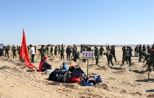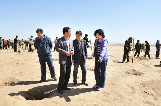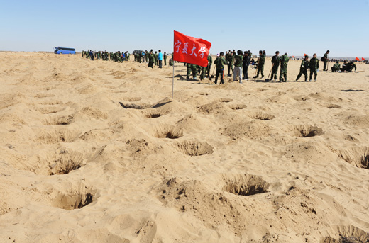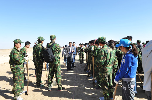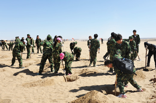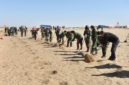 农学院园林专业的陈磊同学对记者说:“这样的植树活动十分有意义,既可以防沙固沙、保护生态,又能使自己在活动中得到了锻炼”。