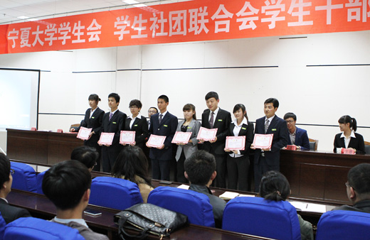 近年来,宁夏大学学生会和宁夏大学学生社团联合会在学校党委的正确领导和校团委的正确指导下,扎实开展了各项工作,在加强大学生思想政治教育、维护校园稳定、发展和繁荣校园文化、构建和谐校园建设等方面发挥了重要作用,成绩显著。接下来,宁夏大学学生会和宁夏大学学生社团联合会新一届学生干部将凝聚力量,围绕学校党政中心工作,更加奋发进取、开拓创新,进一步发挥好“自我教育、自我管理、自我服务”的职能,继续做好学校联系广大学生的桥梁和纽带,继续服务好广大学生成长成才,为实现学校第六次党代会确定的战略目标做出应有的贡献!