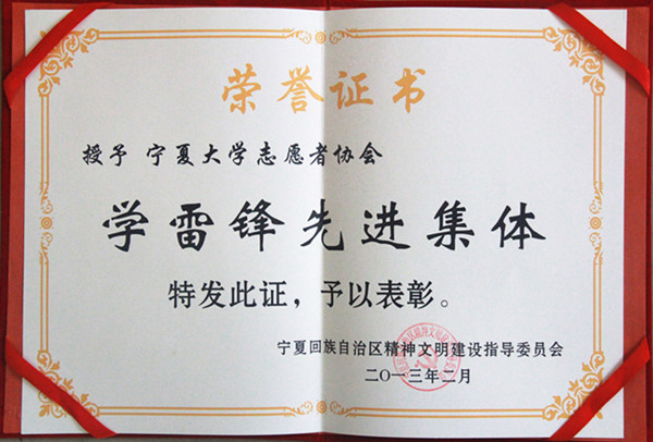 【宁夏大学新闻中心讯 团委】2月28日,在全区学习雷锋活动表彰大会暨第二届宁夏公民道德论坛上,宁夏大学志愿者协会再获殊荣,被自治区精神文明指导委员会授予全区学雷锋先进集体荣誉称号。自治区党委常委、宣传部部长、文明委主任蔡国英出席会议并讲话,自治区政协副主席张乐琴出席会议。会议还表彰了全区学雷锋先进集体和先进个人。