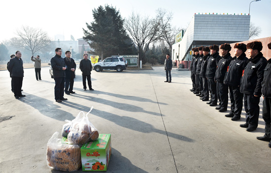 慰问中,校领导表示,春节是千家万户团圆的时刻,但保卫、后勤部门为了保证春节期间教职工的正常生活,仍有部分干部职工放弃了和亲人团聚的机会,坚守在一线工作岗位,体现了“舍小家顾大家”的无私奉献精神。齐岳书记、何建国校长代表全校师生员工向春节和寒假期间坚守岗位的保安和后勤干部职工表示衷心地感谢,并勉励他们再接再厉,确保广大教职工度过一个欢乐、祥和、安全的春节和假期。