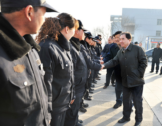 校领导先后来到A区、C区、新华学院、B区、D区和南校区,每到一处,都与当班保安一一握手,嘘寒问暖,亲切问候“大家辛苦啦!”,并祝福大家春节快乐。在B区和C区锅炉房,校领导详细了解值班情况、锅炉运行情况和安全防范措施,特别强调要重视寒假期间的安全工作,并叮嘱后勤集团领导,要妥善安排好值班人员的工作和生活,确保大家度过一个欢乐祥和的春节。