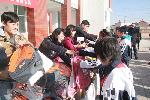 【宁夏大学新闻中心讯 团委】为了积极响应自治区团委关爱农民工子女,冬季送温暖的号召,1月11日下午,我校志愿者协会将凝聚着全校师生爱心与期望的3万元爱心物资送到了吴忠市利通区扁担沟同利燕宝希望小学和金积镇梨花桥希望小学经济困难学子们的手中。校团委副书记、校志愿者协会会长马慧、吴忠市利通区常委李晓明、副区长马娟、团委书记李国强以及我校“心灵阳光”大学生志愿者代表、希望小学师生代表参加了捐赠仪式。