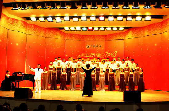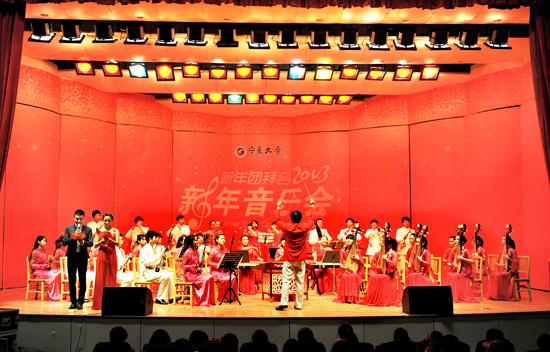 【宁夏大学新闻中心讯 黄二宁/图黄二宁、胡玥/文】 龙去神威犹在,蛇来春意浓浓。12月29日下午,宁夏大学新年团拜会暨新年音乐会在音乐厅隆重举行。校党政领导,各部门党政主要负责人,民主党派、政协委员、无党派人士代表,优秀教师和学生代表近500余人参加团拜会并共同欣赏了这场音乐盛宴。