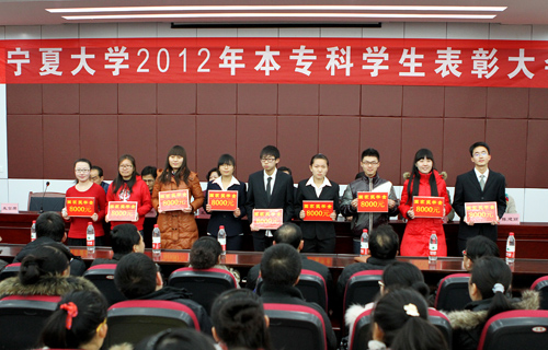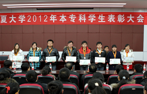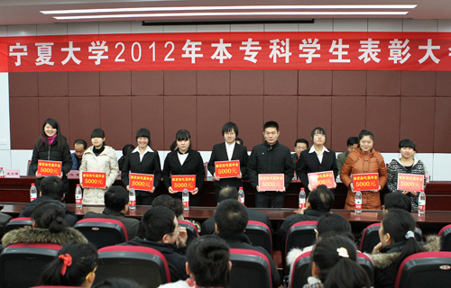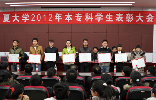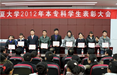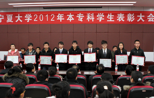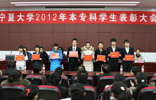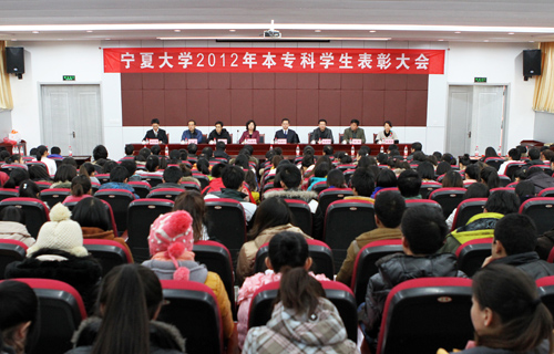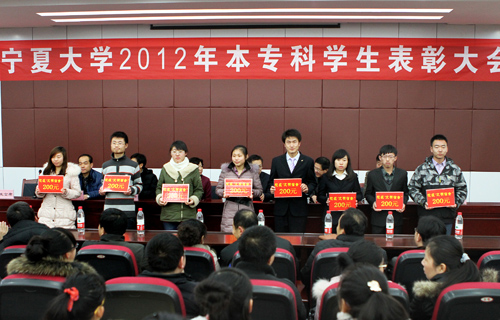 【宁夏大学新闻中心讯 黄二宁/图 赵世芳/文 】12月25日下午,我校2012年本、专科学生表彰大会在校本部B区研究生二楼报告厅举行。校党委副书记赵利宁、副校长王春秀,各相关部门负责人出席会议,会议由学生处处长王宏伟主持。