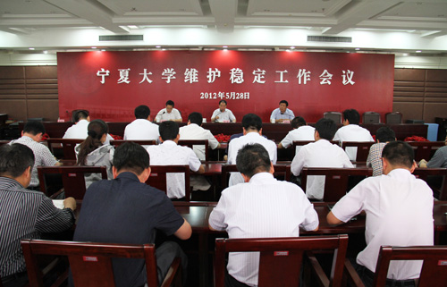 【宁夏大学新闻中心讯 黄二宁∕图 张丽艳∕文】5月28日下午,我校在行政楼六楼会议室召开维护稳定工作会议,总结部署近期校园安全稳定工作。校党委书记齐岳,副书记赵利宁,学校安全稳定及处置突发事件领导小组成员,各学院党总支书记、分管学生工作副书记、学办主任以及综治办、保卫处科级以上干部参加了会议。会议由何建国校长主持。