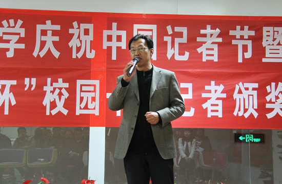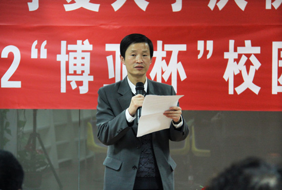 颁奖结束后,李斌部长发表了热情洋溢的讲话,他对获奖的校园十佳记者表示衷心的祝贺,对宁夏大学博亚书店的大力支持表示衷心的感谢,同时要求广大学生记者能够立足校园,积极挖掘校园新闻,配合校党委宣传部做好宣传工作,协助宁夏大学报宁夏大学新闻网的编辑和管理。典礼最后,2012年度校园十佳记者带来的合唱《站起来》,气势磅礴,饱含真情,共同祝愿宁夏大学记者团和博亚书店的明天更加辉煌。