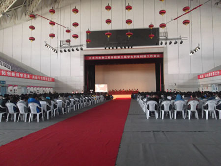 【宁夏大学新闻中心讯 土木与水利工程学院 金小霞】10月31日下午,土木学院在大学生活动中心隆重召开了第三届学生科技创新工作会议。宁夏大学纪检委书记孔斌,副校级调研员、土木学院院长田军仓,教务处处长何凤隽,副院长崔自治、尹娟、马彩霞、姚青云、毛明杰,学院党总支副书记张强和全体教职工出席了会议。会议由马正亮书记主持。崔自治副院长在会议上首先宣读了宁夏大学土木、水利、建筑类科技创新大赛的通知及要求。教师代表金宝宏、张学科、李王成、燕宁娜分别对全国大学生结构设计、工程管理项目、沙盘模拟大赛、水利创新设计以及建筑城规创新设计竞赛作了回顾和介绍。学生代表齐一聪、周康与大家分享了自己参加大学生科技创新大赛的经验与体会。12级新生付景峰代表新生表示将会以此次活动为契机,以学长为榜样积极参加本次大赛。